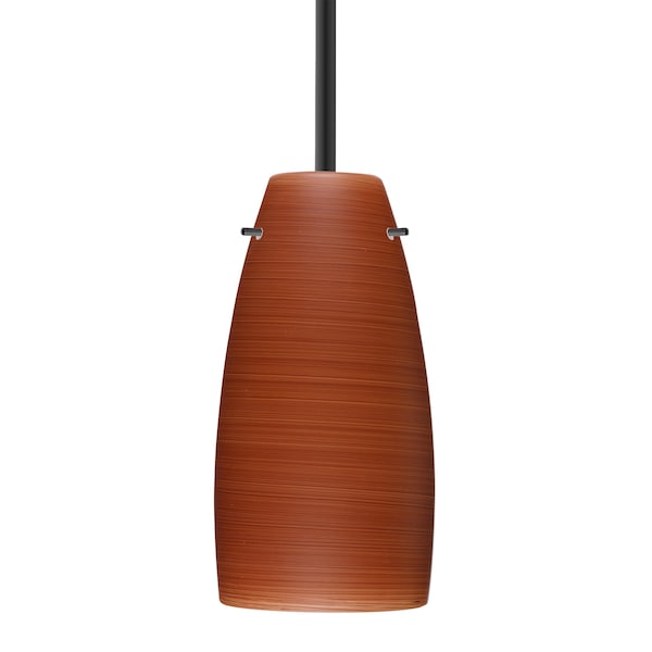 The Tao 10 pendant features a softly radiused glass, that will gracefully blend into almost any decorating theme. Our Cherry glass is a soft off-white cased glass that is handcrafted with spiraling strokes of dark red, emphasizing the subtle brush pattern. The reddish rippled design is subdued and harmonious. Unlit, it appears as simply a textured surface like wood grain, but when lit the texture comes alive. The smooth satin finish on the clear outer layer is a result of an extensive etching process, with the texture of the subtle brushing. This blown glass is handcrafted by a skilled artisan, utilizing century-old techniques passed down from generation to generation. The stem pendant fixture is equipped with an adjustable telescoping section, 4 connectable stem sections 3in, 6in, 12in, and 18in and low Profile flat monopoint canopy. These stylish and functional luminaries are offered in a beautiful Black finish.
