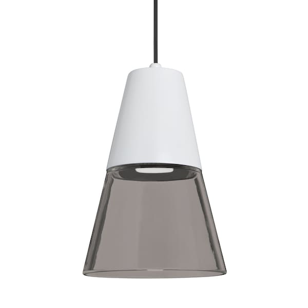 Our Timo 6 LED Mini Pendant is equipped with a white capped conical clear shade, concealing a focused downlight source for effective task lighting. Produced in a modern yet soft industrial theme, this pendant offers a look that will easily merge into the recent urban decorating trends. Our Smoke Trans glass is a colored semi-transparent glass. The seductive glow has a low key harmonious display that exudes a warm mood. When lit the glass is vitalizing as well as stylish. This handcrafted glass uses a process where every glass is consistently produced using a press mold, keeping variations to a minimum. The 12V cord pendant fixture is equipped with a 10ft braided coaxial cord with teflon jacket and a low profile flat monopoint canopy. These stylish and functional luminaries are offered in a beautiful Black finish.