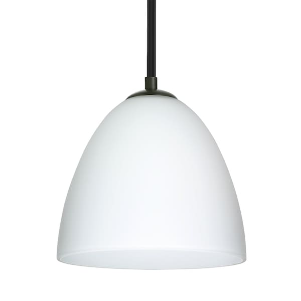 Besa Vila Stem Pendant, Opal Matte, Black Finish, 1x 9W LED
