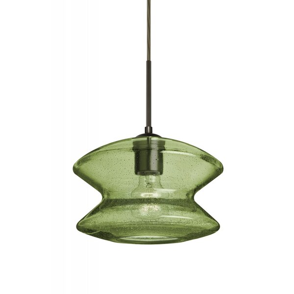 The Zen Moss Pendant is a transitional design composed of a transparent Moss "Hour-Glass" shaped glass , with an interesting bubble pattern blown randomly throughout the glass. The pleasing play of light through the shade's bubble accents makes for a striking affect, created by the exposed light source positioned inside the shade. The cord pendant fixture is equipped with a 10' SVT cordset and an "Easy Install" dome monopoint canopy. These stylish and functional luminaries are offered in a beautiful brushed Bronze finish.