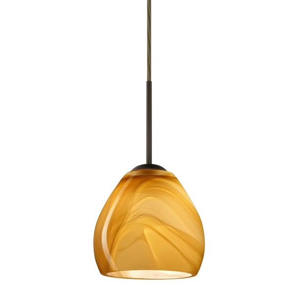 The Bolla is a compact handcrafted glass, softly radiused to fit gracefully into contemporary spaces. This unique décor is handcrafted, with layered swirls of yellow-amber and golden-brown against white, finished to a high gloss. It’s classic swirl pattern and high gloss surface has a truly florid gleam. Honey is a hand-blown glass designed to have a shiny and polished finish. The glass is gathered and rolled into shape a unique pattern is formed that cannot be replicated. This blown glass is handcrafted by a skilled artisan, utilizing century-old techniques passed down from generation to generation. Each piece of this décor has its own unique artistic nature that can be individually appreciated. The cord pendant fixture is equipped with a 10' SVT cord set and a low Profile flat monopoint canopy. These stylish and functional luminaries are offered in a beautiful brushed Bronze finish.