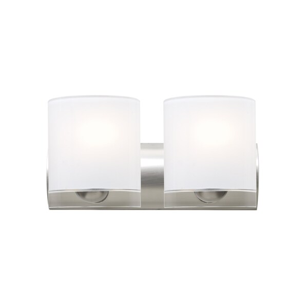 The Celtic Vanity is a contemporary bath design, employing a softly radiused and fused 3-piece glass diffuser. The glass includes a blown opal glass upper section and blown clear lower section, which are fused onto a clear flat glass body with an exposed rounded edge. The clear glass body connects the glass to the upscale plated back plate, resulting in a floating glass appearance. The Vanity fixture is equipped with a sleek arcing die cast lamp holder and matching radiused rectangular canopy. These stylish and functional luminaries are offered in a beautiful Satin Nickel finish.