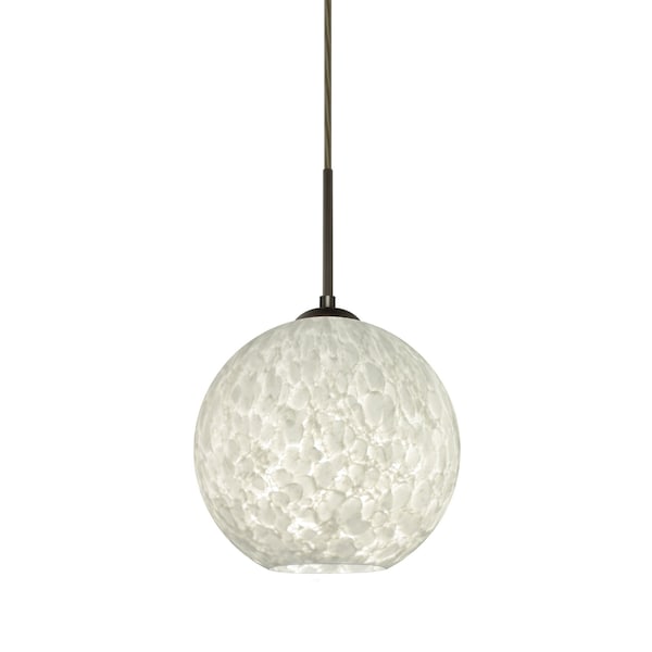 The globe-shaped Coco is a blown glass with a neutral décor and classic shape that blends gracefully into all environments. Our Carrera glass is a classic yet modern décor that gives off a soft white light. Clear molten glass is rolled in alabaster powder like frit, and then blown into shape with a semi-clear frosted white inner finish. This décor is created by rolling molten glass in small bits of white called frit. The smooth satin finish on the clear outer layer is a result of an extensive etching process. This blown glass is handcrafted by a skilled artisan, utilizing century-old techniques passed down from generation to generation. Each piece of this décor has its own artistic nature that can be individually appreciated. The cord pendant fixture is equipped with a 10' SVT cordset and an low profile flat monopoint canopy. These stylish and functional luminaries are offered in a beautiful brushed Bronze finish.