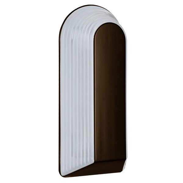 This arched shaped of this European blown glass is a perfect complement to architectural features of todays buildings. The bronze finish is opaque. The inside of the glass is softly frosted to enhance the appearance. While suitable for outdoor use, the design of this luminaire easily translates into interior use.