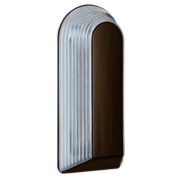 This arched shaped of this European blown glass is a perfect complement to architectural features of todays buildings. The bronze finish is opaque. While suitable for outdoor use, the design of this luminaire easily translates into interior use.