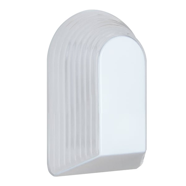 This arched shaped of this European blown glass is a perfect complement to architectural features of todays buildings. The white finish is semi-translucent for increased light output. The inside of the glass is softly frosted to enhance the appearance. While suitable for outdoor use, the design of this luminaire easily translates into interior use.