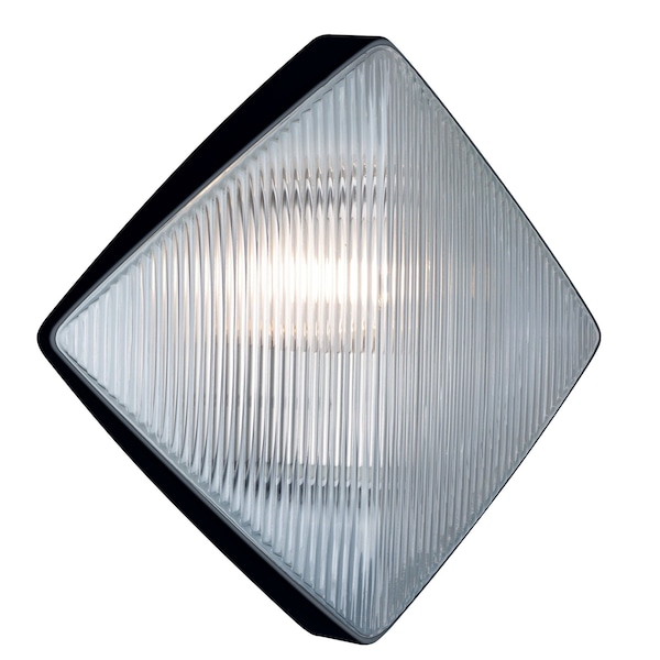 The "ribbed" face of these handcrafted glasses playfully diffuses the illumination. The opaque black finish is hand-painted. While suitable for outdoor use, the design of this luminaire easily translate into interior use.