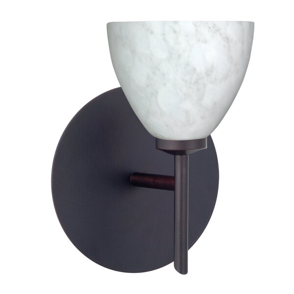 Divi has a classical bell shape that complements aesthetic, while also built for optimal illumination. Our Carrera glass is a classic yet modern décor that gives off a soft white light. Clear molten glass is rolled in alabaster powder like frit, and then blown into shape with a semi-clear frosted white inner finish. This décor is created by rolling molten glass in small bits of white called frit. The smooth satin finish on the clear outer layer is a result of an extensive etching process. This blown glass is handcrafted by a skilled artisan, utilizing century-old techniques passed down from generation to generation. Each piece of this décor has its own artistic nature that can be individually appreciated. The mini sconce is equipped with a decorative lamp holder mounted to either a low profile round or square canopy. These stylish and functional luminaries are offered in a beautiful brushed Bronze finish.