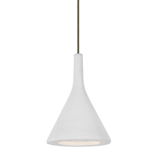 Our Gala white pendant is equipped with a cement-based conical shade, while concealing a focused light source for effective task lighting. Produced from natural elements and industrially inspired, this pendant offers a look that will easily merge into the recent urban decorating trend. The cord pendant fixture is equipped with a 10' SVT cordset and an low profile flat monopoint canopy. These stylish and functional luminaries are offered in a beautiful brushed Bronze finish.