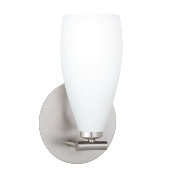 The Karli features a softly radiused glass, that will gracefully blend into almost any decorating theme. Our Opal glass is a soft white cased glass that can suit any classic or modern decor. Opal has a very tranquil glow that is pleasing in appearance. The smooth satin finish on the clear outer layer is a result of an extensive etching process. This blown glass is handcrafted by a skilled artisan, utilizing century-old techniques passed down from generation to generation. The mini sconce fixture is equipped with a low-profile machined lamp holder and a round flat canopy. The glass shade threads onto the lamp holder for easy installation. These stylish and functional luminaries are offered in a beautiful Satin Nickel finish.