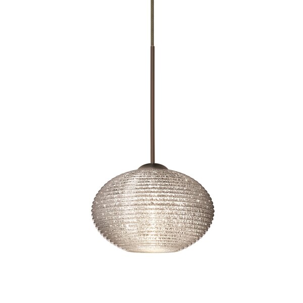 The Lasso is a wide yet compact handcrafted glass, with distinctive ridges, softly radiused to fit gracefully into contemporary spaces. Our Glitter glass is a clear blown and a technologically advanced crystal coating applied to the inside. The coating contains multiple micro-layers of glass particles that create unique prismatic optical properties, which effectively alter both the reflected and transmitted light. So unlit, it appears like a frosted glass; when lit, it becomes alive with dazzling light effects. The 12V cord pendant fixture is equipped with a 10' braided coaxial cord with Teflon jacket and a low profile flat monopoint canopy. These stylish and functional luminaries are offered in a beautiful brushed Bronze finish.