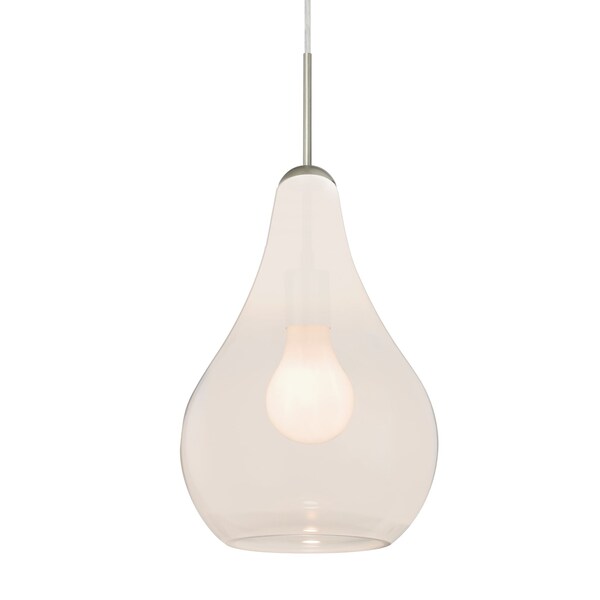 The Leon is based on a tear-drop style blown glass complemented by a milky-white decor, casting a semi-translucent glow that's reminiscent of a morning fog. Our design purposefully allows for a subtle glimpse of the glow of the light source, appealling for both the partial and full milky white decor. The cord pendant fixture is equipped with a 10' SVT cordset and an low profile flat monopoint canopy. These stylish and functional luminaries are offered in a beautiful Satin Nickel finish.