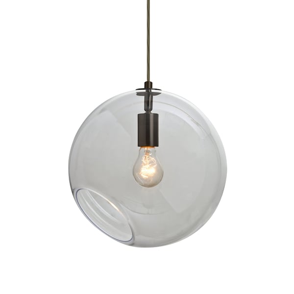 Maestro's timeless globe-shaped blown glass is anything but standard with its angle cut bottom, allowing for interesting design applications, particularly when employed in multilight configurations. The clear blown glass is contemporary yet timeless, and will suit any classic or modern decor. When lit, the clear glass shimmers and sparkles with the accents from the light source. This blown glass combination is handcrafted by a skilled artisan, utilizing century-old techniques passed down from generation to generation. The cord pendant fixture is equipped with a 10' SVT cordset and an low profile flat monopoint canopy. These stylish and functional luminaries are offered in a beautiful brushed Bronze finish.