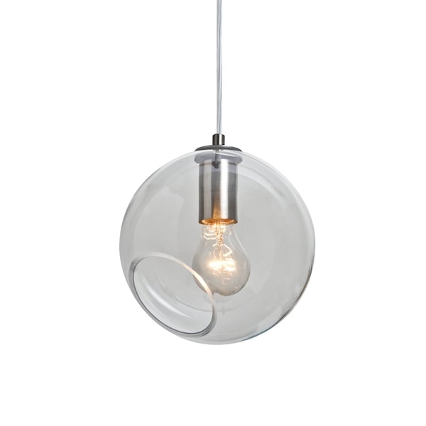 Maestro's timeless globe-shaped blown glass is anything but standard with its angle cut bottom, allowing for interesting design applications, particularly when employed in multilight configurations. The clear blown glass is contemporary yet timeless, and will suit any classic or modern decor. When lit, the clear glass shimmers and sparkles with the accents from the light source. This blown glass combination is handcrafted by a skilled artisan, utilizing century-old techniques passed down from generation to generation. The cord pendant fixture is equipped with a 10' SVT cordset and an low profile flat monopoint canopy. These stylish and functional luminaries are offered in a beautiful Satin Nickel finish.