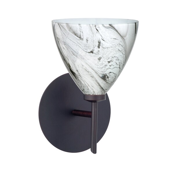 Mia has a classical bell shape that complements aesthetic, while also built for optimal illumination. Our Marble Grigio glass is a bright white cased glass, with inner opal and a glossy finish. The white color is accented by flowing marbleized black lines, and nestled between the inner opal and outer clear layers. When lit the glass is vitalizing as well as stylish, that adds appeal to any environment. This blown glass is handcrafted by a skilled artisan, utilizing century-old techniques passed down from generation to generation. Each piece of this décor has its own artistic nature that can be individually appreciated. The mini sconce is equipped with a decorative lamp holder mounted to either a low profile round or square canopy. These stylish and functional luminaries are offered in a beautiful brushed Bronze finish.