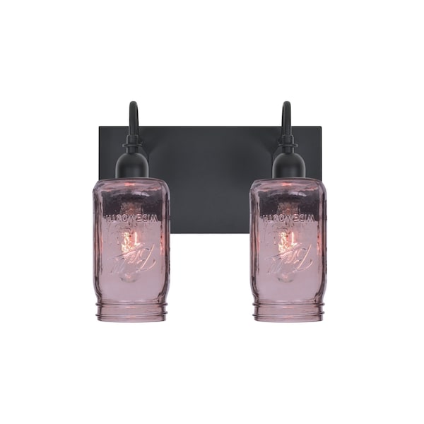 The Milo 4 Purple Vanity is a transitional bath design composed of a glass shade inspired by the traditional glass jars used for canning, enhanced with a subtle purple transcolored spray . Mounted off the broad canopy with timeless gooseneck socketholders, the seductive glowing jars has a low key harmonious display that exudes a warm mood. When lit the glass is vitalizing as well as stylish. This handcrafted glass uses a process where every glass is consistently produced using a press mold, keeping variations to a minimum.These stylish and functional luminaries are offered in a beautiful Black finish.