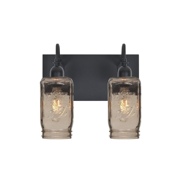 The Milo 4 Smoke Vanity is a transitional bath design composed of a glass shade inspired by the traditional glass jars used for canning, enhanced with a subtle smoke transcolored spray . Mounted off the broad canopy with timeless gooseneck socketholders, the seductive glowing jars has a low key harmonious display that exudes a warm mood. When lit the glass is vitalizing as well as stylish. This handcrafted glass uses a process where every glass is consistently produced using a press mold, keeping variations to a minimum.These stylish and functional luminaries are offered in a beautiful Black finish.