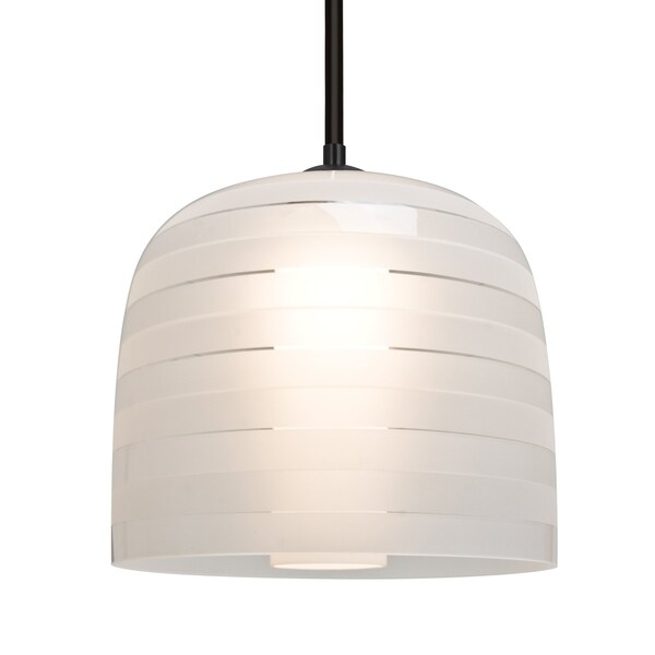 The Mitzi collection combines a stylized multi-striped outer European glass with a matte opal inner diffuser, creating an interesting dimensional depth using layers. Contributing to the effect is the manner of applying the multi-stripes, where they alternate between inside and outside the glass and thus alternate between glossy and matte in finish. And our inner Opal glass is a soft white cased style, produced with a smooth satin finish, created as a result of an extensive etching process. The stem pendant fixture is equipped with an adjustable telescoping section, 4 connectable stem sections (3", 6", 12", and 18") and low Profile flat monopoint canopy. These stylish and functional luminaries are offered in a beautiful Black finish.