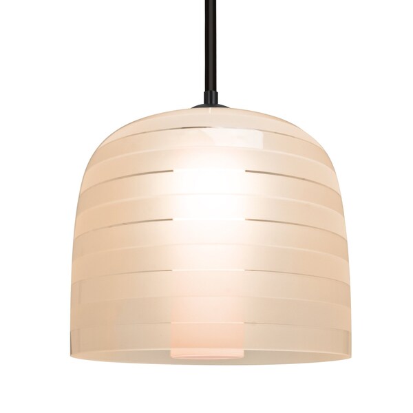 The Mitzi collection combines a stylized multi-striped outer European glass with a matte opal inner diffuser, creating an interesting dimensional depth using layers. Contributing to the effect is the manner of applying the multi-stripes, where they alternate between inside and outside the glass and thus alternate between glossy and matte in finish. And our inner Opal glass is a soft white cased style, produced with a smooth satin finish, created as a result of an extensive etching process. The stem pendant fixture is equipped with an adjustable telescoping section, 4 connectable stem sections (3", 6", 12", and 18") and low Profile flat monopoint canopy. These stylish and functional luminaries are offered in a beautiful Black finish.