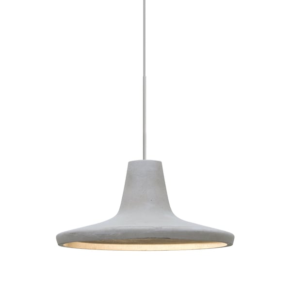Our classically RLM-shaped Modus natural mini pendant is equipped with a cement-based shade, while concealing a focused light source for effective task lighting. Produced from natural elements and industrially inspired, this pendant offers a look that will easily merge into the recent urban decorating trend. The 12V cord pendant fixture is equipped with a 10' braided coaxial cord with teflon jacket and a low profile flat monopoint canopy. These stylish and functional luminaries are offered in a beautiful Satin Nickel finish.