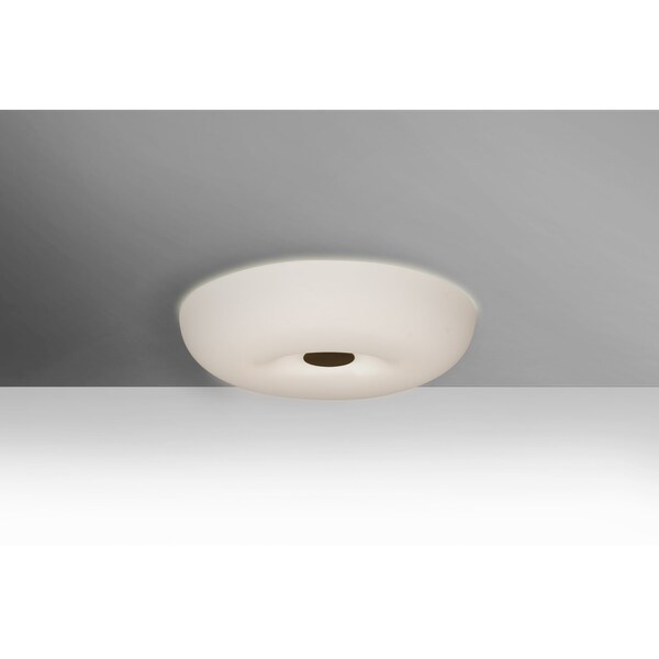 Our Nimbus opal Flush mount is a modern flush mount, composed of an interestingly toroid-shaped blown opal glass shade which can suit any modern decor. Opal has a very tranquil glow that is pleasing in appearance, the smooth satin finish on the opal’s outer layer is a result of an extensive etching process. These stylish and functional luminaries are offered in a beautiful brushed Bronze finish.