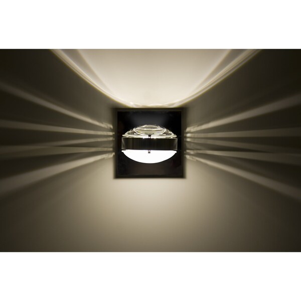 The Optos wall sconce uses two separate optical-effect lenses to produce interesting displays of up/down light. The aluminum body allows for 359 degree rotation and holds the lenses with clips. Our Clear Lens is a transparent molded borosilicate glass, with a parabolic shape designed to carefully refract the light rays in the light source. The result is an edgy display that exudes an energetic mood. When lit this gives off a light that is functional and vibrant. This handcrafted glass uses a process where every glass is consistently produced using a mold, keeping variations to a minimum.