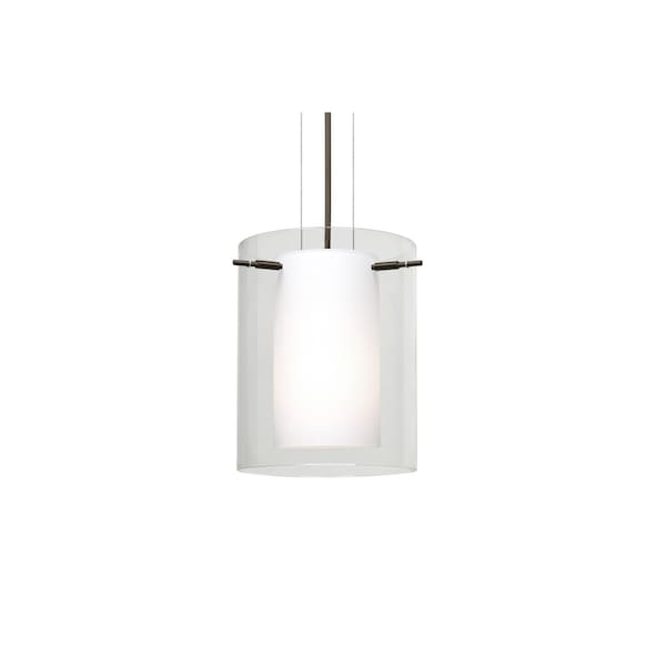 The Pahu is a distinctive double-glass pendant, with an inner opal cylinder centered within a transparent outer glass The clear blown glass complements the soft white Opal cased glass, which can suit any classic or modern decor. Opal has a very tranquil glow that is pleasing in appearance, as the clear glass sparkles with the accents from that glow. The smooth satin finish on the opal’s outer layer is a result of an extensive etching process. This blown glass combination is handcrafted by a skilled artisan, utilizing century-old techniques passed down from generation to generation. The cable pendant fixture is equipped with three (3) 10' silver aircraft cables and 10' AWM cord set, and a low profile flat monopoint canopy. These stylish and functional luminaries are offered in a beautiful brushed Bronze finish.