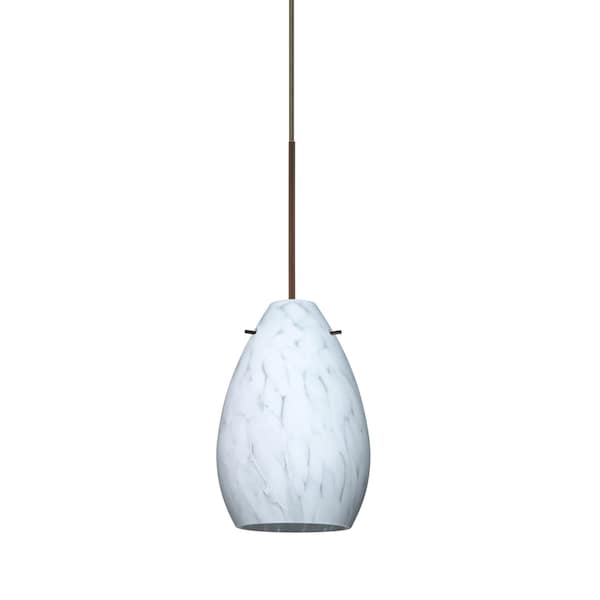 The Pera 6 is a curvy bell-bottomed shape, that fits nicely into any contemporary design. Our Carrera glass is a classic yet modern décor that gives off a soft white light. Clear molten glass is rolled in alabaster powder like frit, and then blown into shape with a semi-clear frosted white inner finish. This décor is created by rolling molten glass in small bits of white called frit. The smooth satin finish on the clear outer layer is a result of an extensive etching process. This blown glass is handcrafted by a skilled artisan, utilizing century-old techniques passed down from generation to generation. Each piece of this décor has its own artistic nature that can be individually appreciated. The 12V cord pendant fixture is equipped with a 10' braided coaxial cord with Teflon jacket and a low profile flat monopoint canopy. These stylish and functional luminaries are offered in a beautiful brushed Bronze finish.