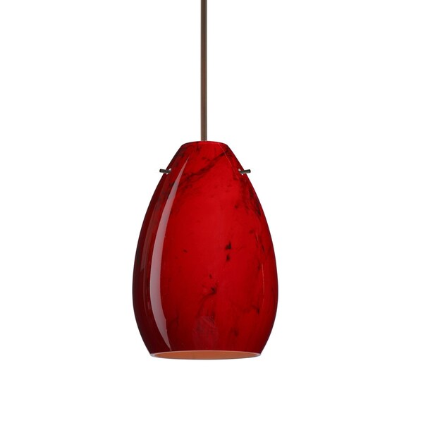 The Pera 6 is a curvy bell-bottomed shape, that fits nicely into any contemporary design. Our Magma glass is a fiery red cased glass, with inner opal and a glossy finish. The deep red color is accented by flowing marbleized black lines, and nestled between the inner opal and outer clear layers. When lit the glass is vitalizing as well as stylish, that adds appeal to any environment. This blown glass is handcrafted by a skilled artisan, utilizing century-old techniques passed down from generation to generation. Each piece of this décor has its own artistic nature that can be individually appreciated. The 12V cord pendant fixture is equipped with a 10' braided coaxial cord with Teflon jacket and a low profile flat monopoint canopy. These stylish and functional luminaries are offered in a beautiful brushed Bronze finish.