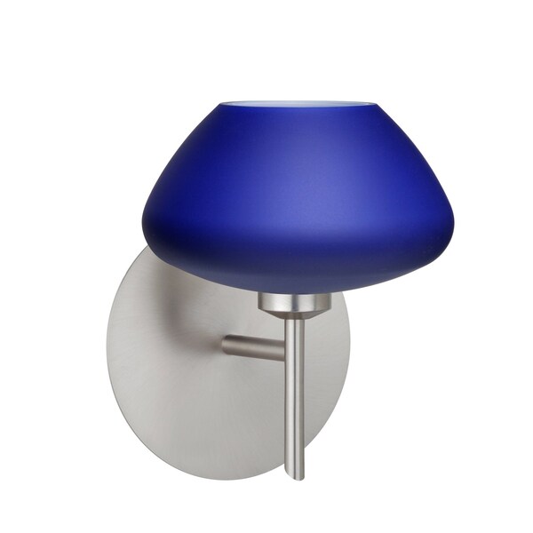 The Peri is a compact handcrafted glass, softly radiused to fit gracefully into contemporary spaces. Our Blue Matte glass is a dark primary blue pressed glass, with a white inner layer. This décor can add an edgy, classic, or contemporary feel to any room. When lit this gives off a light that is functional and soothing. The smooth satin finish on the clear outer layer is a result of an extensive etching process. This handcrafted glass uses a process where every glass is consistently produced using a press mold, keeping variations to a minimum. The mini sconce is equipped with a decorative lamp holder mounted to either a low profile round or square canopy. These stylish and functional luminaries are offered in a beautiful Satin Nickel finish.