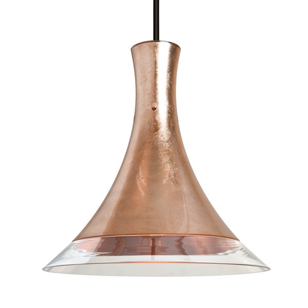 Rio Stem Pendant, Copper Foil/Clear, Black Finish, 1x9W LED