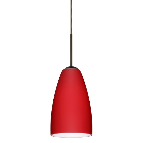 The Riva 9 pendant features a softly radiused glass, that will gracefully blend into almost any decorating theme. Our Ruby Matte glass is a deep red cased glass. This décor can add a contemporary feel to any room. When lit this glass gives off a light that is functional and vibrant. The smooth satin finish on the outer layer is a result of an extensive etching process. This blown glass is handcrafted by a skilled artisan, utilizing century-old techniques passed down from generation to generation. The cord pendant fixture is equipped with a 10' SVT cord set and an low profile flat monopoint canopy. These stylish and functional luminaries are offered in a beautiful brushed Bronze finish.