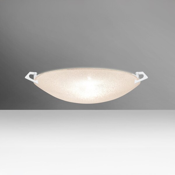 Sonya’s Satin Frost glass is suspended near the ceiling by three decorative twist-lock clips. Our Glitter glass is a clear blown and a technologically advanced crystal coating applied to the inside. The coating contains multiple micro-layers of glass particles that create unique prismatic optical properties, which effectively alter both the reflected and transmitted light. So unlit, it appears like a frosted glass; when lit, it becomes alive with dazzling light effects. These stylish and functional luminaries are offered in a beautiful White finish.