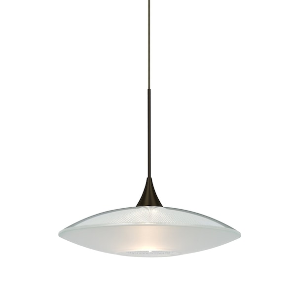 The Spazio Clear/Frost pendant features two softly radiused glasses, fused together to create a refined contemporary look. Our clear prismatic top glass is internally stippled with a contemporary polished outer finish, while the bottom glass has been softly frosted on the outer surface. The result is tranquil bottom glow with a low key harmonious display that exudes a warm mood, contrasted by a dazzling optical effect created by the highly refracting top glass. The 12V cord pendant fixture is equipped with a 10' braided coaxial cord with teflon jacket and a low profile flat monopoint canopy. These stylish and functional luminaries are offered in a beautiful brushed Bronze finish.