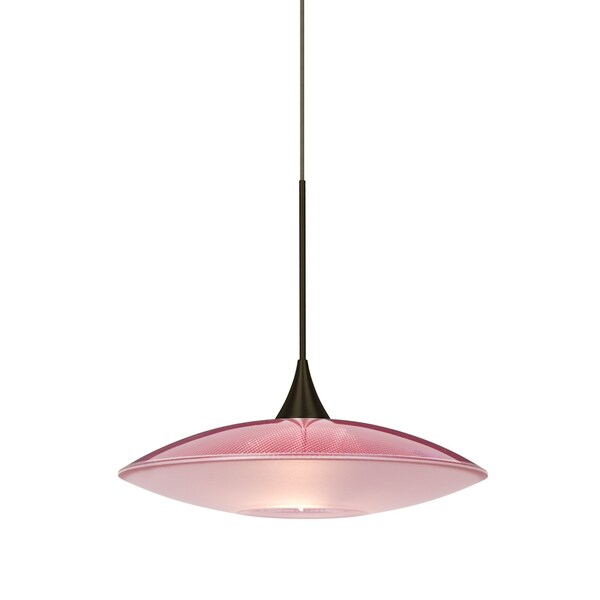 The Spazio Red/Frost pendant features two softly radiused glasses, fused together to create a refined contemporary look. Our transparent red prismatic top glass is internally stippled with a contemporary polished outer finish, while the bottom glass has been softly frosted on the outer surface. The result is tranquil bottom glow with a low key harmonious display that exudes a warm mood, contrasted by a dazzling optical effect created by the highly refracting top glass. The 12V cord pendant fixture is equipped with a 10' braided coaxial cord with teflon jacket and a low profile flat monopoint canopy. These stylish and functional luminaries are offered in a beautiful brushed Bronze finish.