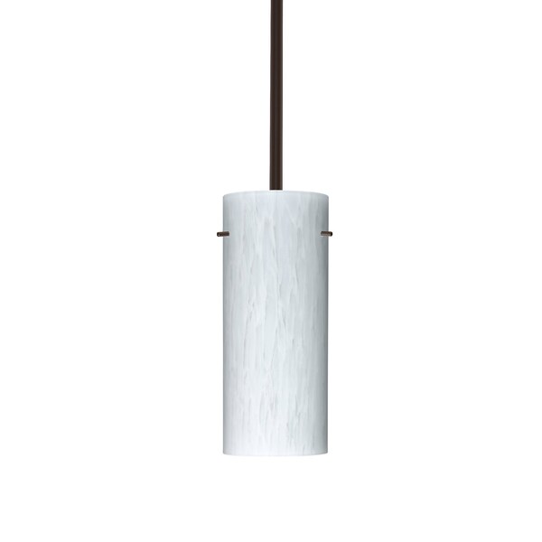 Stilo 10 is a classic open-ended cylinder of handcrafted glass, a shape that will stand the test of time. Our Carrera glass is a classic yet modern décor that gives off a soft white light. Clear molten glass is rolled in alabaster powder like frit, and then blown into shape with a semi-clear frosted white inner finish. This décor is created by rolling molten glass in small bits of white called frit. The smooth satin finish on the clear outer layer is a result of an extensive etching process. This blown glass is handcrafted by a skilled artisan, utilizing century-old techniques passed down from generation to generation. Each piece of this décor has its own artistic nature that can be individually appreciated. The stem pendant fixture is equipped with an adjustable telescoping section, 4 connectable stem sections (3", 6", 12", and 18") and low Profile flat monopoint canopy. These stylish and functional luminaries are offered in a beautiful brushed Bronze finish.