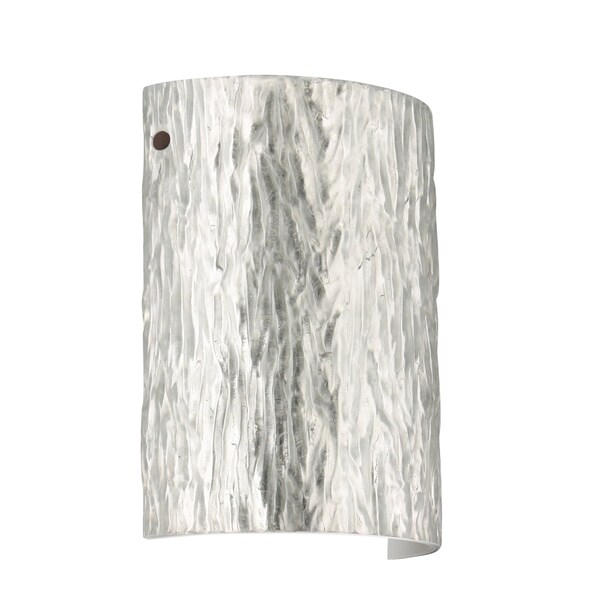 The cylindrical open ended Tamburo wall sconce has minimal hardware to show off the beautiful stone-textured glass. ADA-Compliant. Our Stone Silver Foil glass is a clear blown glass with an outer texture of coarse sandstone, with distressed metal foil hand applied to the inside. Inspired by the elements of nature, the appearance of the surface resembles the beautiful cut patterning of a rock formation. This blown glass is handcrafted by a skilled artisan, utilizing century old techniques that have been passed down from generation to generation. Each piece of this décor has its own artistic nature that can be individually appreciated. These stylish and functional luminaries are offered in a beautiful brushed Bronze finish.