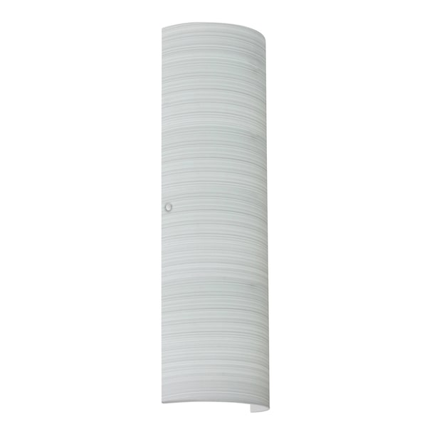 The classic colonnade-shaped Torre wall sconce has minimal hardware to show off the beautiful open-ended handcrafted glass. ADA-Compliant. Our Chalk glass is a soft white opal cased glass that is handcrafted with spiraling strokes of off-white color, emphasizing the subtle brush pattern. The silvery rippled design is subdued and harmonious. Unlit, it appears as simply a textured surface like spun silk, but when lit the texture comes alive. The smooth satin finish on the clear outer layer is a result of an extensive etching process, with the texture of the subtle brushing. This blown glass is handcrafted by a skilled artisan, utilizing century-old techniques passed down from generation to generation. These stylish and functional luminaries are offered in a beautiful Polished Nickel finish.