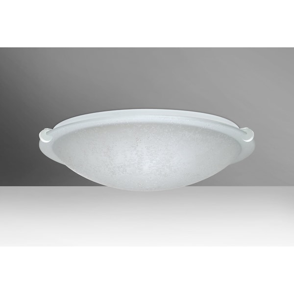Trio showcases a contemporary glass diffuser suspended from the aluminum pan by three decorative metal clips. The Stucco decor starts with a clear blown glass with a subtle matte frost, then we apply a uniform patterning of textured clear glazing. The result is a sophisticated adaptation of the luxurious and tactile finish used within the elegant Venetian plaster finish. When illuminated, the glazed accents create a striking diffuse glow that calls attention to the timeless texture. These stylish and functional luminaries are offered in a beautiful White finish.