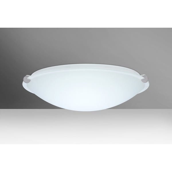 Trio showcases a contemporary glass diffuser suspended from the aluminum pan by three decorative metal clips. Our White glass is a soft white cased glass that can suit any classic or modern decor. White has a very tranquil glow that is pleasing in appearance. The smooth satin finish on the clear outer layer is a result of an extensive etching process. This blown glass is handcrafted by a skilled artisan, utilizing century-old techniques passed down from generation to generation. These stylish and functional luminaries are offered in a beautiful Satin Nickel finish.
