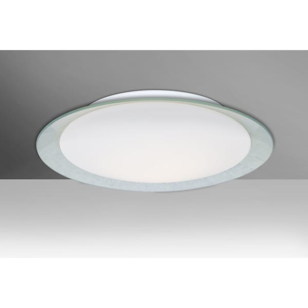 Tuca LED flush mount marries a clean white handcrafted glass diffuser with a decorative glass ring. Besa’s easy-to-use bayonet mount secures the glass diffuser to the aluminum fitter with a “twist & lock” action. Our Silver Foil radiused glass is sparkling and metallic. Distressed metal foil is applied to the inner surface of a glossy clear blown glass. The silver color complements the soft white Opal cased glass, which can suit any classic or modern decor. Opal has a very tranquil glow that is pleasing in appearance, as the silver foil sparkles with the accents from that glow. The smooth satin finish on the opal’s outer layer is a result of an extensive etching process.