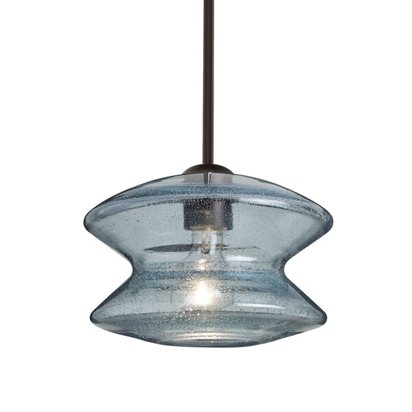 Zen Stem Pendant , Blue Bubble, Bronze Finish, 1x60W Incandescent