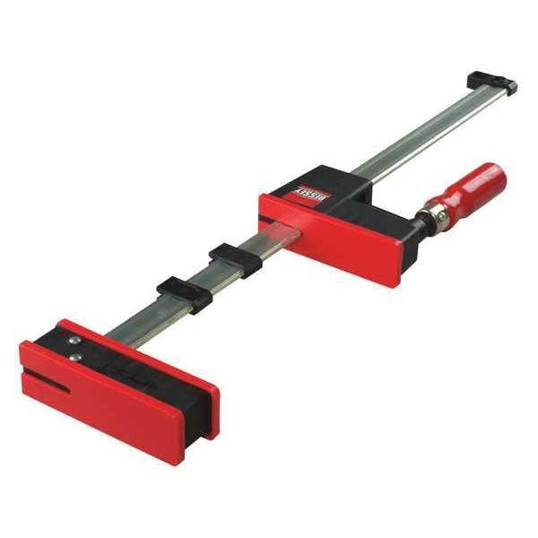 The BESSEY - KRJR-18 is a Parallel Clamp, specifically a K Body(R) REVO(TM) Parallel Clamp, designed for woodworking applications. This tool is designed to apply clamping force, with fixed and sliding jaws that are engineered to remain parallel under normal operating conditions. The clamp is typically used in woodworking tasks and panel glue-ups to help reduce chances of distortion and misalignment. Its usage may contribute to the steadiness of the workpiece under normal conditions.