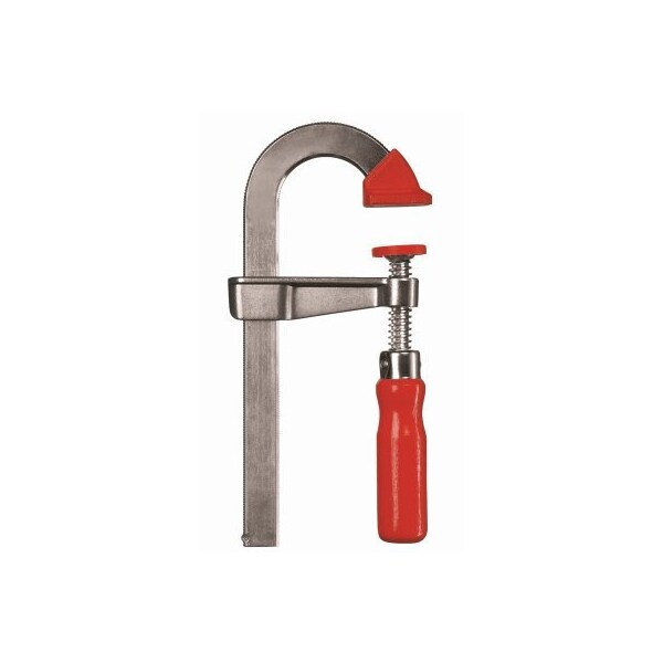 4, Light Duty, UStyle Bar Clamp, Rail Is Made Of Quality Steel Drawn In A Single Piece For Durability Strength, Sliding Arm Is Made Of Die Cast Zinc Which Is Light, Stable Break Resistant, UShaped Rail Enables Step Over Clamping For Those Hard To Reach Spaces, Plastic Pressure Caps On The Top Bottom Sections Protect The Work Piece Surface, 4 Clamping Capacity, 2 Throat Depth, 330 LB Clamping Force