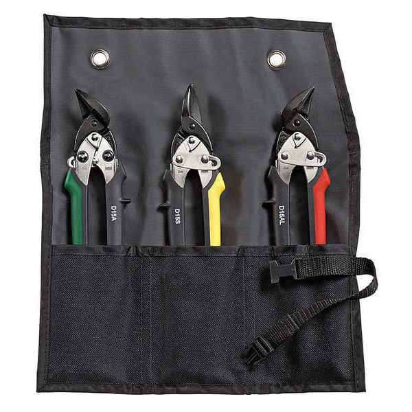 This Bessey D15-SET Aviation Snip Set is the professional-grade snips you need to complete your project. These snips are built with durable steel blades and comfortable ergonomic handles for easy maneuverability. This set contains 3 aviation snips, which come in a convenient canvas pouch. The left/right/straight cutting action of these aviation snips allows you to cut at any angle with ease. Their smooth cutting edges minimize damage to material being cut. They have a safety latch that prevents accidental release of the blade while in use. With this Bessey D15-SET Aviation Snip Set, you can get your job done right the first time around.