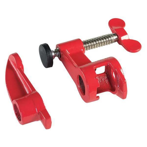 With a throat depth of 2 1/2 in. and a 5-1/2" width, the Bessey PC-34DR Bar Clamp is an ideal choice for construction, woodworking, maintenance and assembly projects. The traditional deep reach pipe clamp has a cast iron handle with standard pad type. This bar clamp also features a 2 1/2 in. throat depth and 5 1/2" width. The handle length is 2 1/2 in., while the clamping surface dimensions are 1 1/4 in. W x 1 1/4 in D. With its cast iron handle and sturdy build, this Bessey Pipe Clamp will provide you with dependable performance time after time.