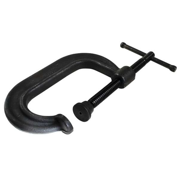 C-Clamp, Jaw Pad Type Flat, Includes Swivel Pad Yes, Jaw Opening - Maximum 2 in, Jaw Opening - Minimum 0 in, Throat Depth 2 1/8 in, Clamping Force 3,500 lb, Body Material Drop Forged Steel, Body Color Black, Spindle Finish Black Oxide, Spindle Material Steel, Handle Type Sliding T, High Visibility No, Number of Anvils 1, Number of Spindles 1, Release Mechanism Standard Thread, Body Finish Black Oxide, Throat Shape Standard