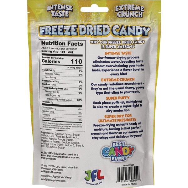 Freeze dried candy has a concentrated flavor with airy crunchy texture. Safe for teeth - even braces. Melt-in-the-mouth experience.