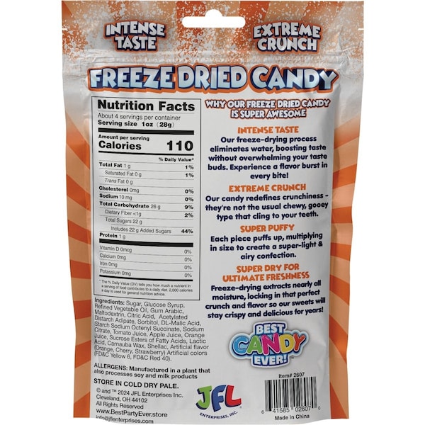 Freeze dried candy has a concentrated flavor with airy crunchy texture. Safe for teeth - even braces. Melt-in-the-mouth experience.