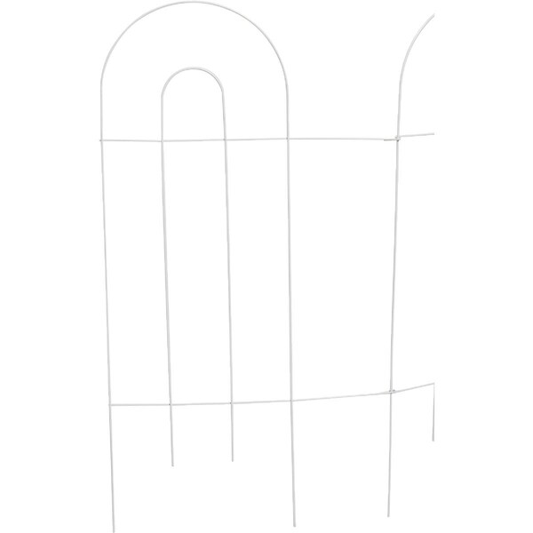 Round top wire garden fence. Features a weatherproof vinyl finish for long life. Self-staking design for easy set-up. Folds flat for easy storage.